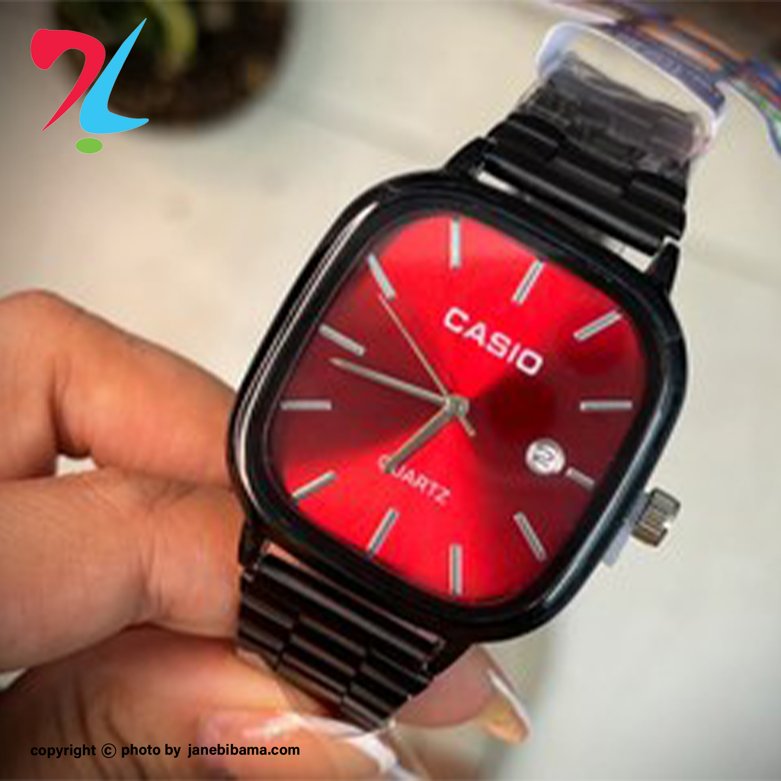 ساعت مچی کاسیو اولدمانی مردانه بند استیل - بند مشکی صفحه قرمز