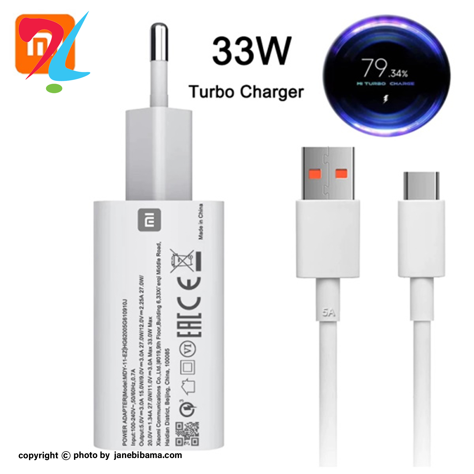 شارژر شیائومی 33 وات دو پین با کابل اصل