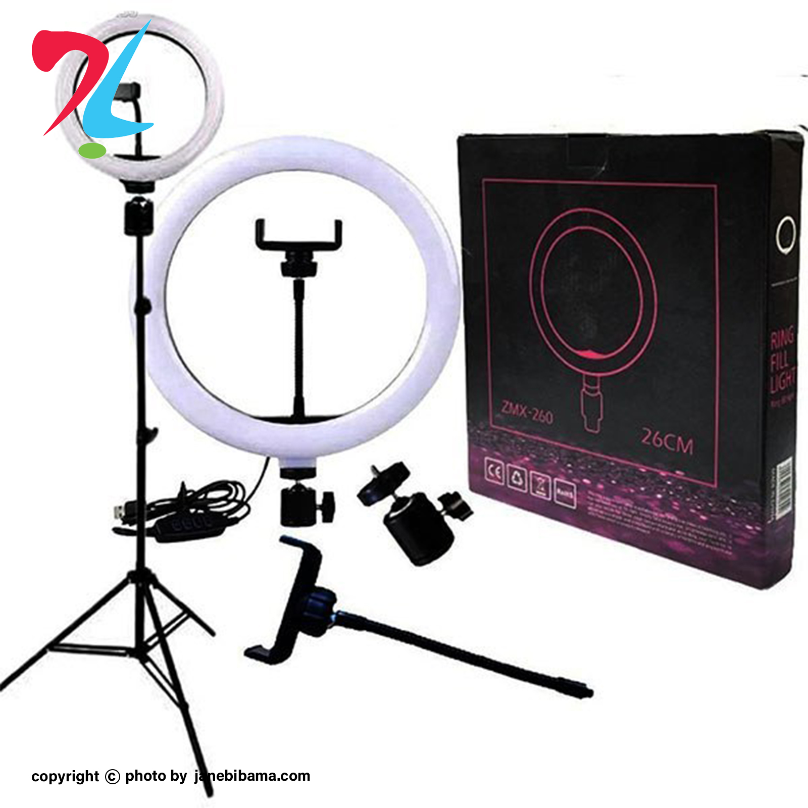 قطر رینگ لایت: ۲۶ سانتی متر یا ۱۰ اینچ