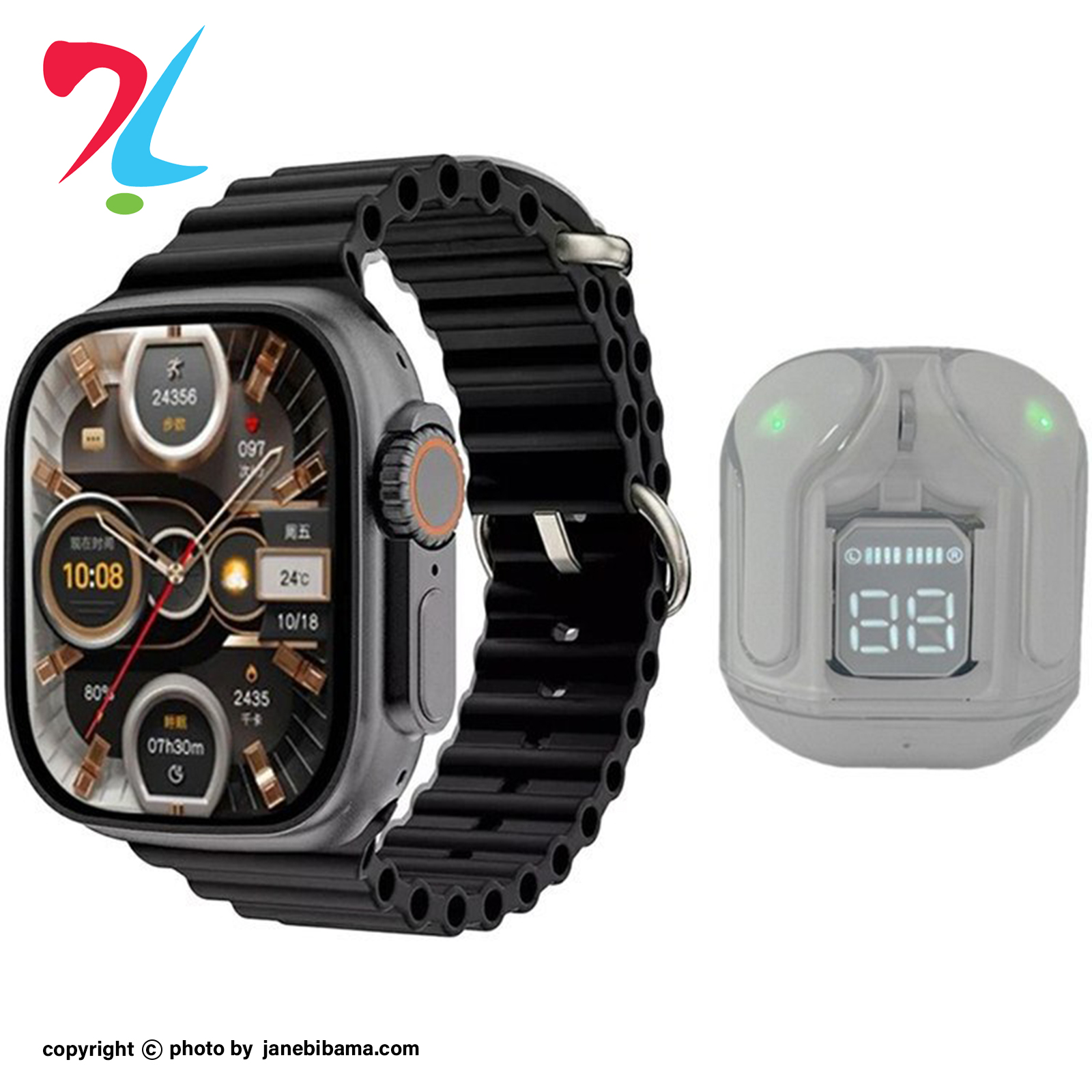 این محصول همراه با ایرپاد بلوتوثی عرضه میشود تا یک پکیج کامل برای مکالمه، گوش دادن به موسیقی و مدیریت فعالیتهای روزمره شما باشد. همچنین مقاومت در برابر آب و گردوغبار (IP67/IP68) خیال شما را در استفاده روزانه و حتی هنگام ورزش راحت میکند.