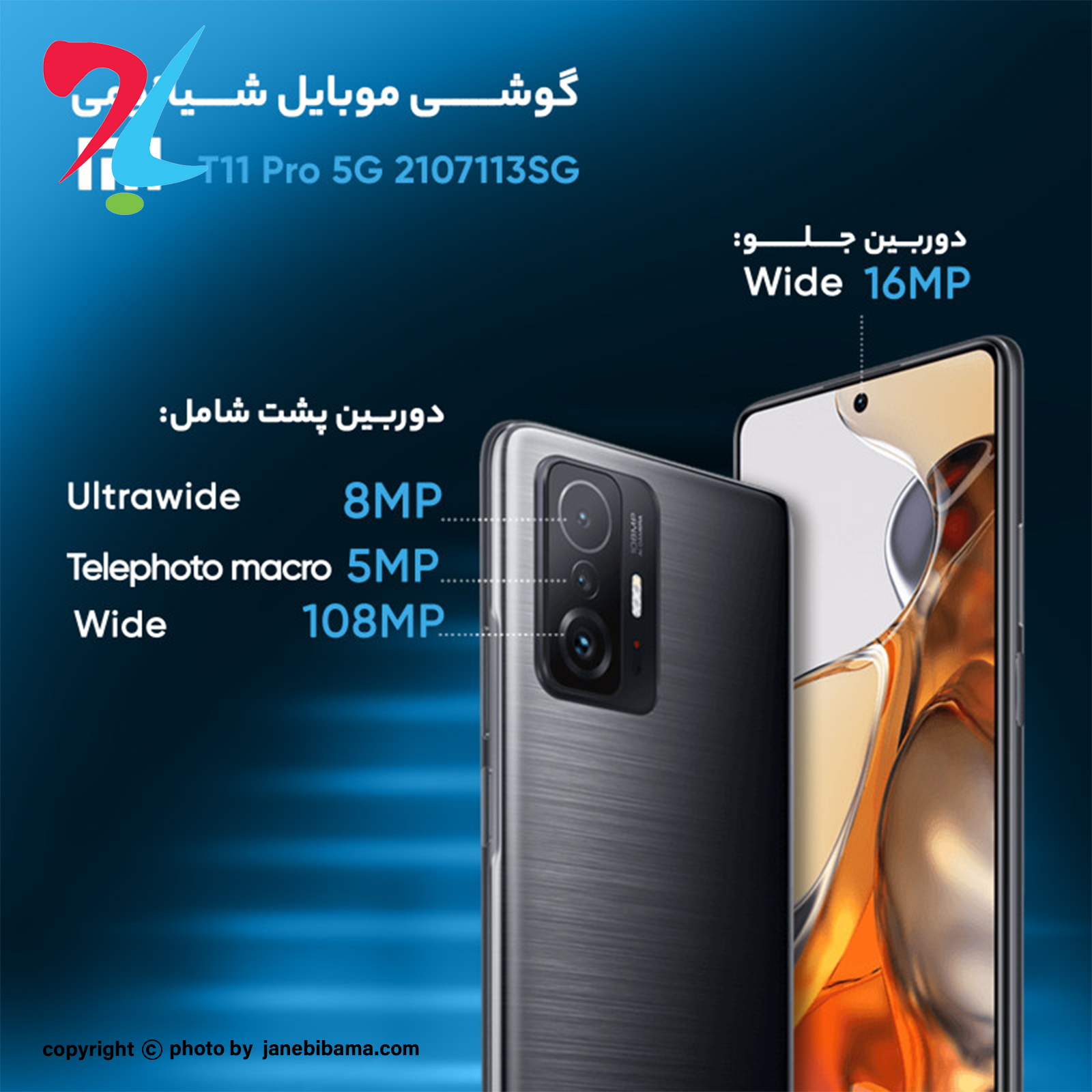 شیائومی در چند سال اخیر عملکرد بسیار درخشانی را در زمینه گوشیهای هوشمند بهنمایش گذاشته است. یکی از گوشیهای هوشمند قدرتمند این شرکت شیائومی 11T Pro است که با توجه به مشخصات فنی، در دسته گوشیهای موبایل هوشمند سطح بالای بازار قرار میگیرد. این گوشی به صفحهنمایش بسیار باکیفیت با ابعاد 6.67 اینچ و رزولوشن 1080×2400 پیکسل از نوع امولد مجهز شده است. توانایی نمایش 395 پیکسل در هر اینچ و مشخصات در نظر گرفته شده، نشان از آن دارد که با یکی از قدرتمندترین و بهترین صفحاتنمایش در بین گوشیهای هوشمند روبهرو هستیم. در قسمت پشتی هم یک سنسور دوربین اصلی با رزولوشن 108 مگاپیکسل از نوع عریض با گشودگی دریچه دیافراگم f/1.8 در کنار سنسور 8 مگاپیکسل از نوع فوق عریض (ultra wide) و سنسور 5 مگاپیکسل از نوع تلهفوتو ماکرو، برای این گوشی هوشمند در نظر گرفته شده است. شیائومی 11T Pro در حال حاضر به قدرتمندترین سنسور دوربین اصلی از نظر میزان رزولوشن در میان گوشیهای هوشمند مجهز شده است. برای دوربین سلفی هم سنسور با رزولوشن 16 مگاپیکسل در نظر گرفته شده است. این گوشی در فیلمبرداری نیز عملکرد بسیار خوبی دارد و سنسور دوربین اصلی قدرتمند در نظر گرفته شده، توانایی ضبط ویدیو با حداکثر کیفیت 8K و سرعت 30 فریم در ثانیه را دارد. حضور پردازنده قدرتمند اسنپدراگون 888 شرکت کوالکام هم سبب شده تا بتوانید جدیدترین و سنگینترین بازیهای حال و حاضر را اجرا کنید و از گیمپلی لذت ببرید. باتری با میزان ظرفیت 5000 میلیآمپر ساعت و شارژر قدرتمند 120 وات که توانایی شارژ 0 تا 100 درصدی باتری این گوشی را در مدت زمان کوتاه 17 دقیقه دارد، از دیگر مشخصات این محصول است.